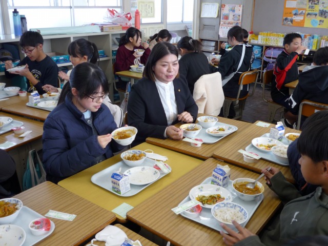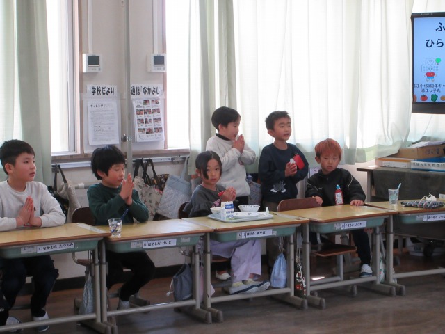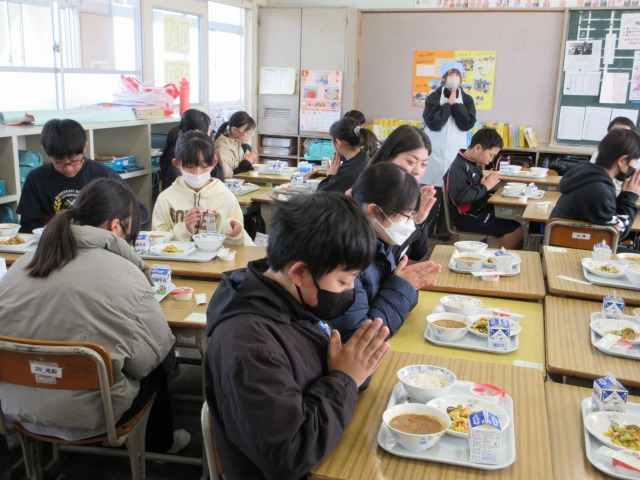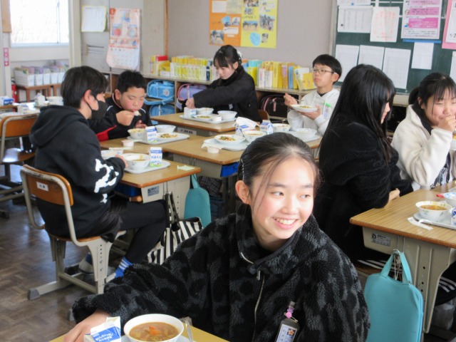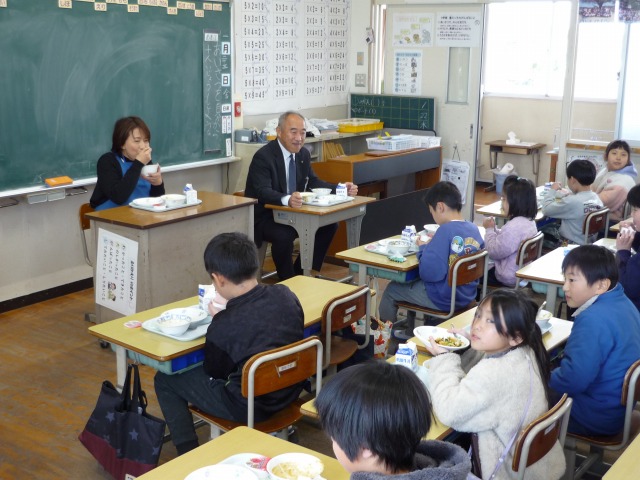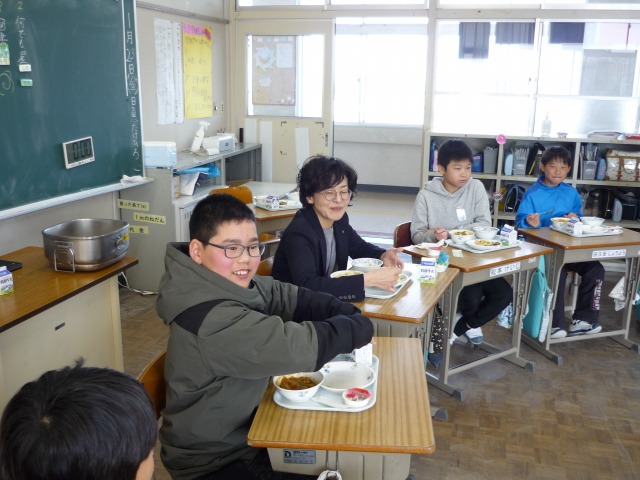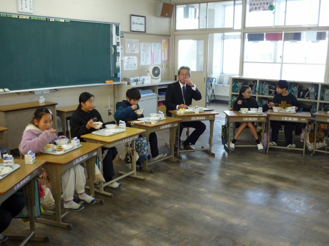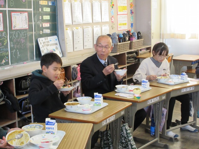 子どもたちは、普段とは少し違う給食の時間に緊張しながらも、笑顔で会話を楽しみながら食事をする姿が見られました。給食を通して、食の大切さや人とのつながりを感じる、心温まるひとときとなりました。