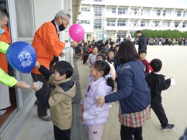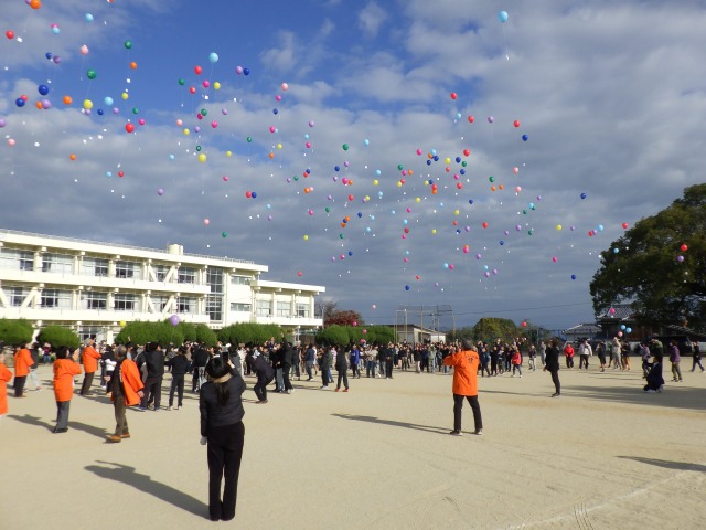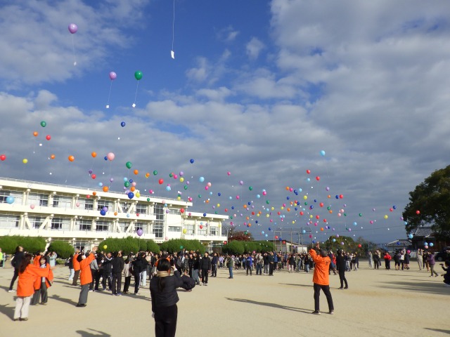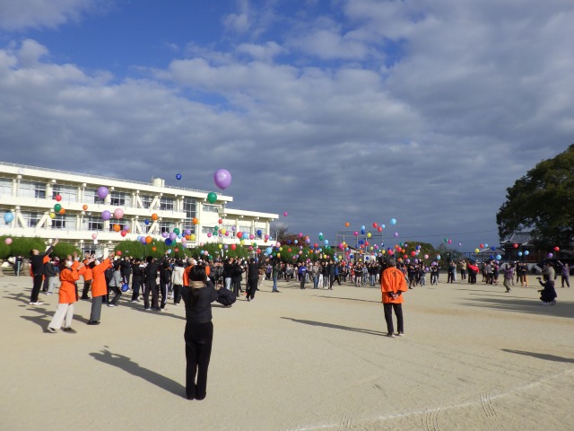 人権集会を行った後、いじめや差別のない社会になることを願い、子どもたちが育てたひまわりの種とメッセージをつけた風船を飛ばしました。風船はふわふわと風に乗って飛び、子どもたちは風船が見えなくなるまで見守っていました。さて、風船はどこまで飛んでいったでしょうか。届いた先でひまわりのが咲き、思いやりの気持ちが広がっていくことを願います。