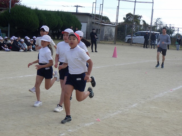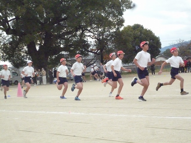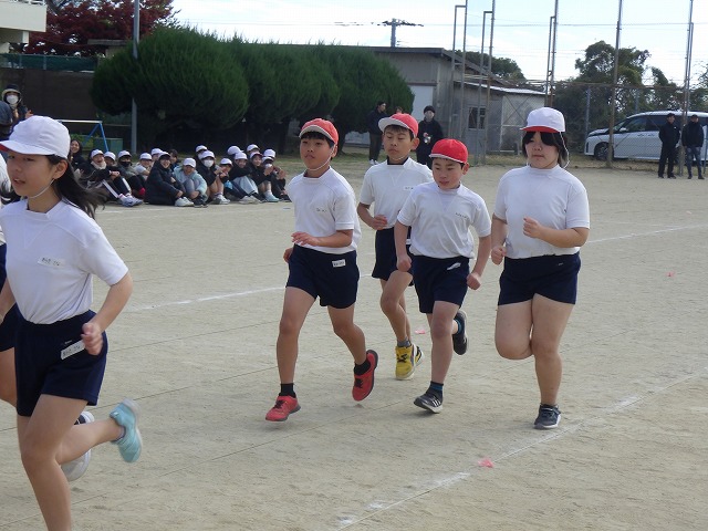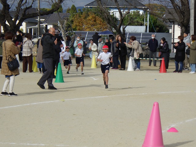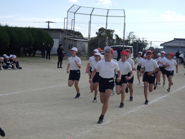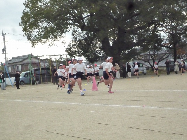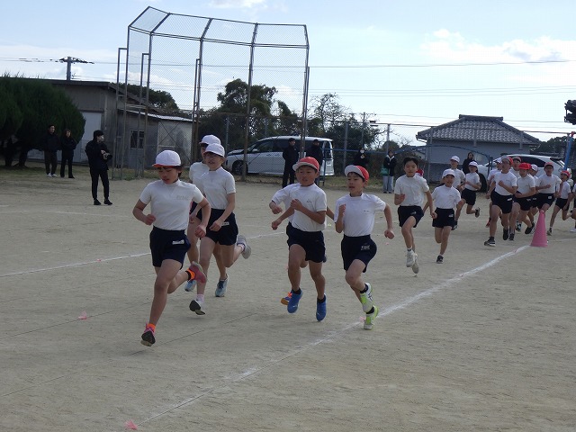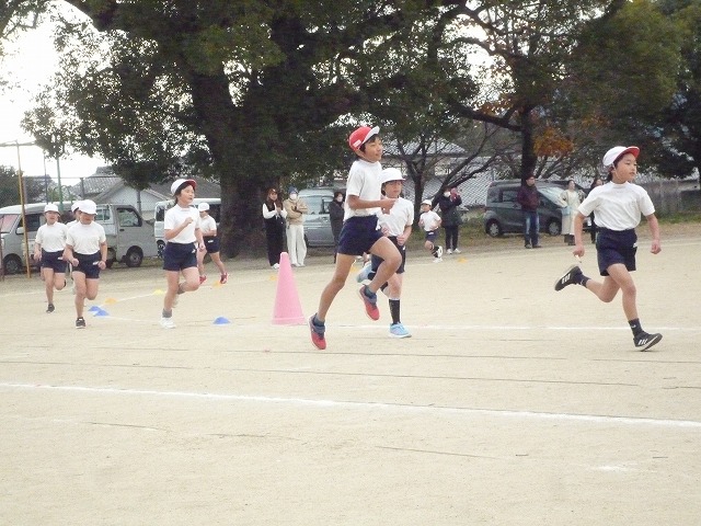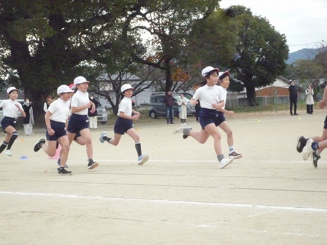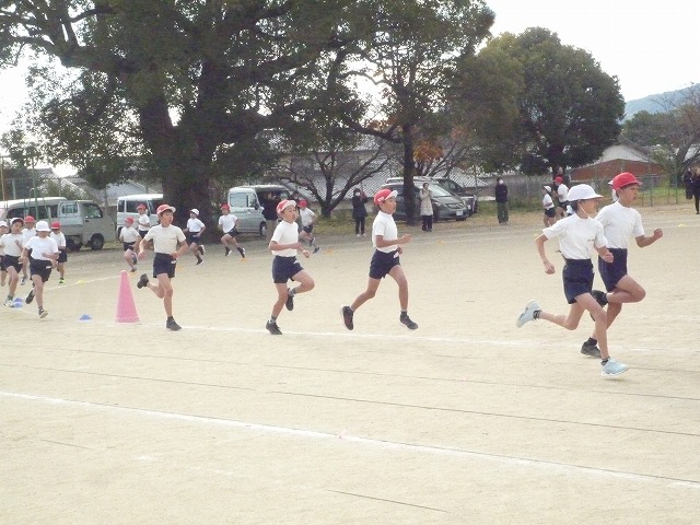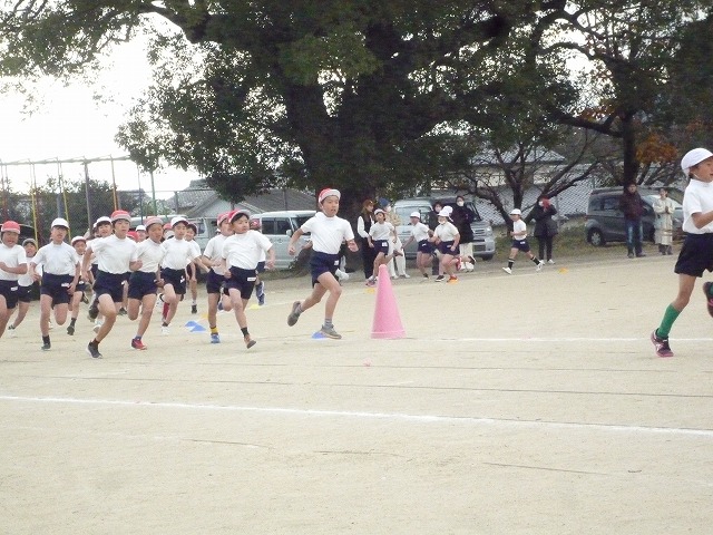 12月4日(木)、前日から厳しい冷え込みが心配されたましたが、当日は風もなく絶好の天気の中、校内持久走大会を行いました。これまで子どもたちは、朝のランニングタイム、体育の時間、昼休みの時間などを使って練習してきました。大会当日は、タイム、順位、記録更新、完走など、それぞれの目標に向かって全力を尽くしました。そして、最後まで走り抜いた子どもたちには、充実感・満足感・達成感の表情があふれていました。また一つ、せいちょうすることができた子どもたちでした。