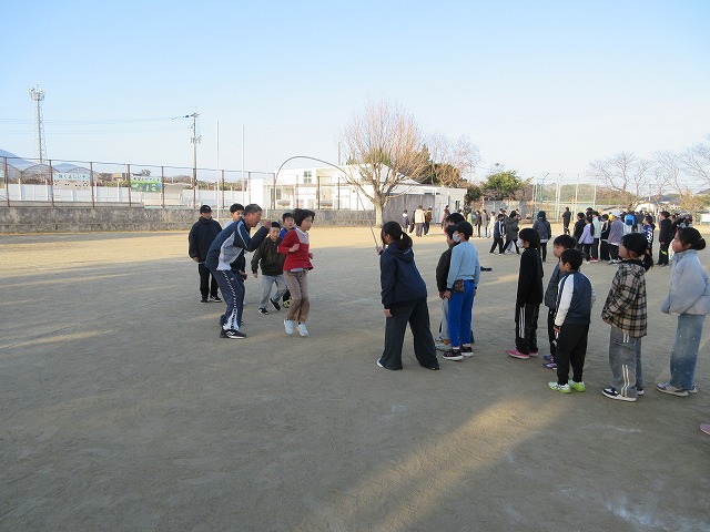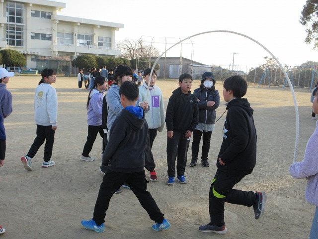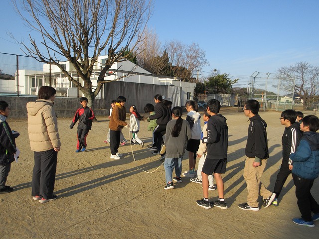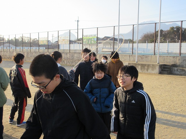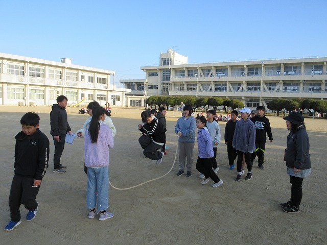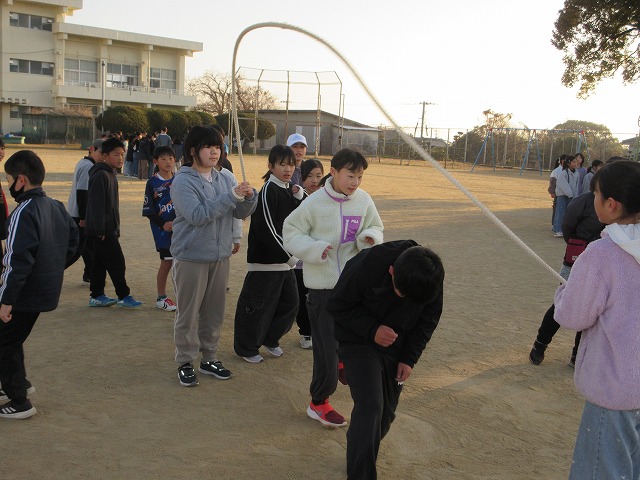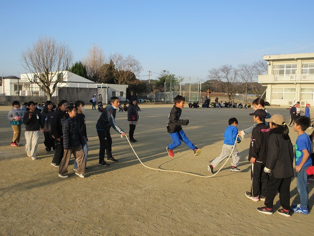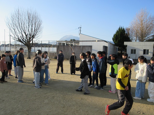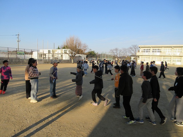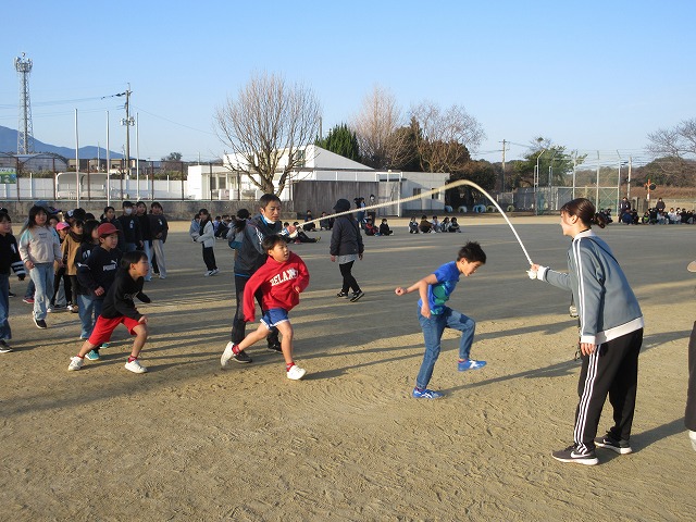 1月28日(水)、朝から気温が低く寒い中、全校で長なわ集会を行いました。子どもたちは、それぞれの学級の新記録を目指し、心を一つにして3分間がんばりました。長なわは、学級の絆や団結力を高めるすばらしい競技です。体力だけでなく集中力も高まります。これまで、朝の時間や体育の授業、昼休みなど各学級で練習に取り組み記録も伸びてきました。本番では、緊張感のある中でしたが、みんなで声をかけ合い、大きな声で回数を数えながらチャレンジしました。結果は、新記録を更新した学級、惜しくも目標に届かなかった学級とそれぞれでしたが、子どもたちが真剣に一生懸命取り組む姿が輝いていました。