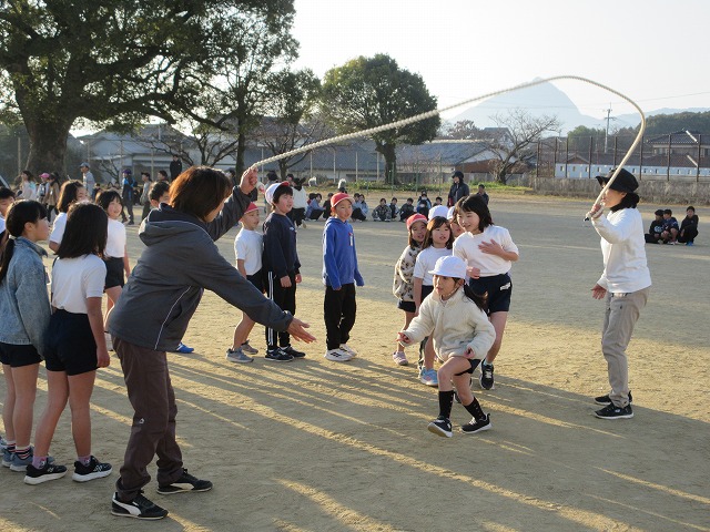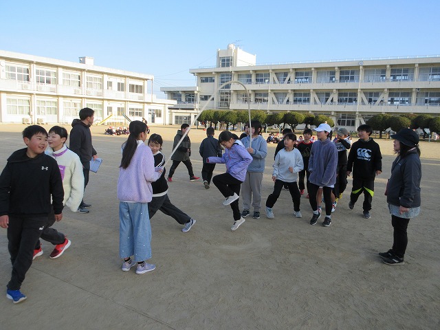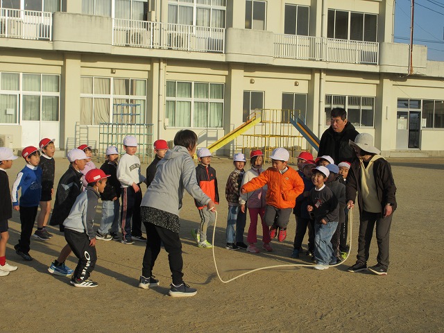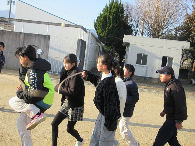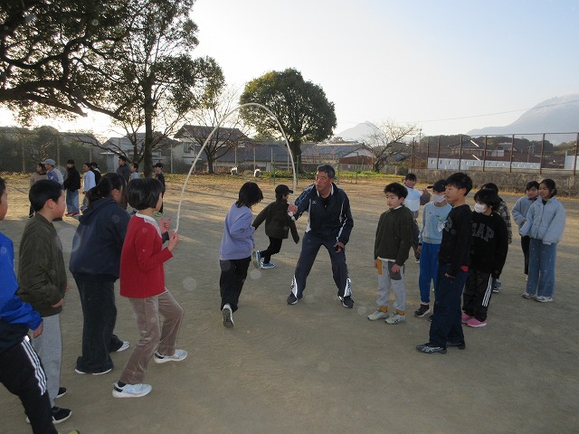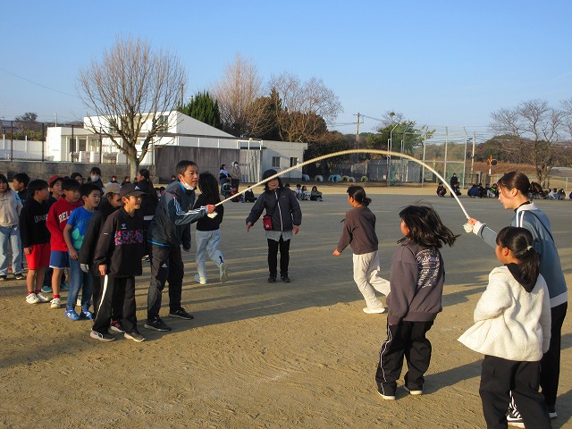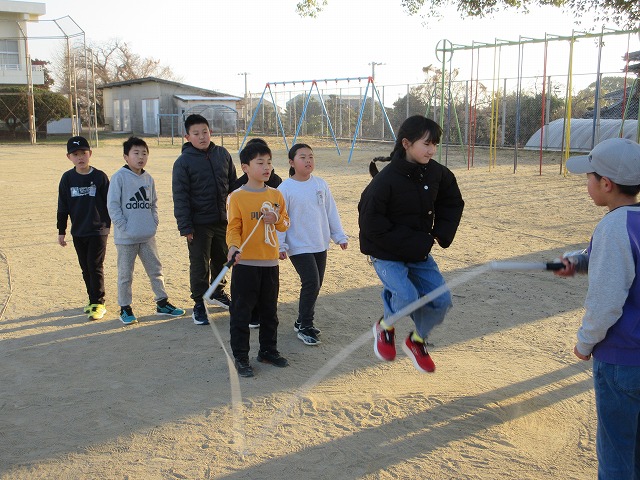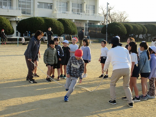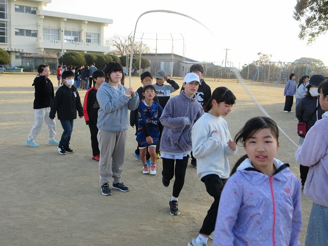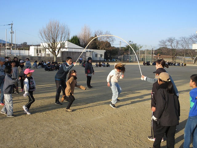 1月28日(水)、朝から気温が低く寒い中、全校で長なわ集会を行いました。子どもたちは、それぞれの学級の新記録を目指し、心を一つにして3分間がんばりました。長なわは、学級の絆や団結力を高めるすばらしい競技です。体力だけでなく集中力も高まります。これまで、朝の時間や体育の授業、昼休みなど各学級で練習に取り組み記録も伸びてきました。本番では、緊張感のある中でしたが、みんなで声をかけ合い、大きな声で回数を数えながらチャレンジしました。結果は、新記録を更新した学級、惜しくも目標に届かなかった学級とそれぞれでしたが、子どもたちが真剣に一生懸命取り組む姿が輝いていました。