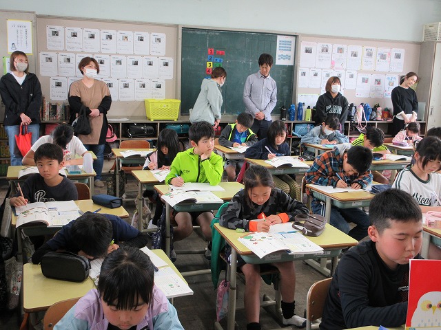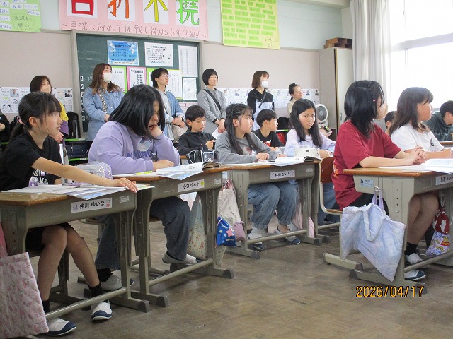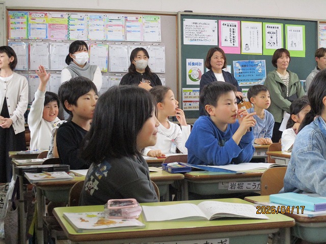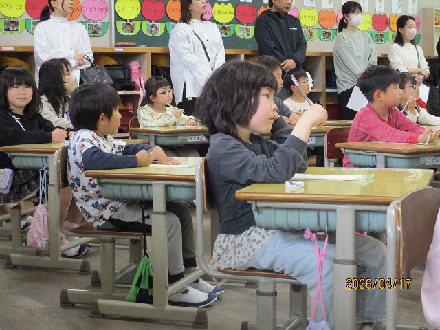 4月17日(金)今年度最初の授業参観を行いました。各学級で国語や算数、社会など、それぞれの教科の学習の様子を保護者の皆様に見ていただきました。1年生にとっては初めての授業参観。少し緊張しながらも、親子でえんぴつの持ち方を確認したり、元気に自己紹介をしたりする姿が見られました。子どもたちは「がんばるぞ」という気持ちでいっぱい。新しい学年での意気込みが感じられる時間となりました。