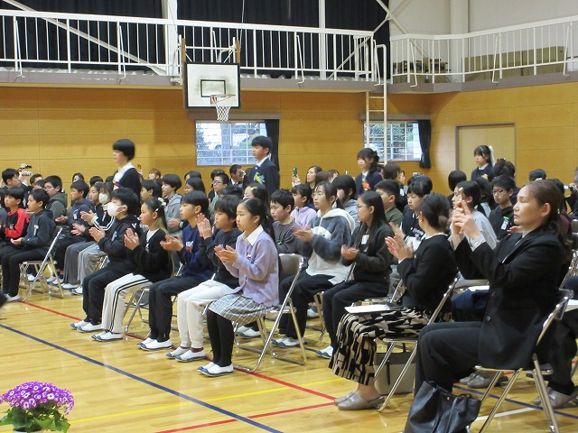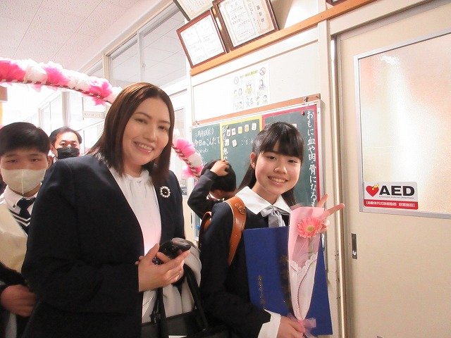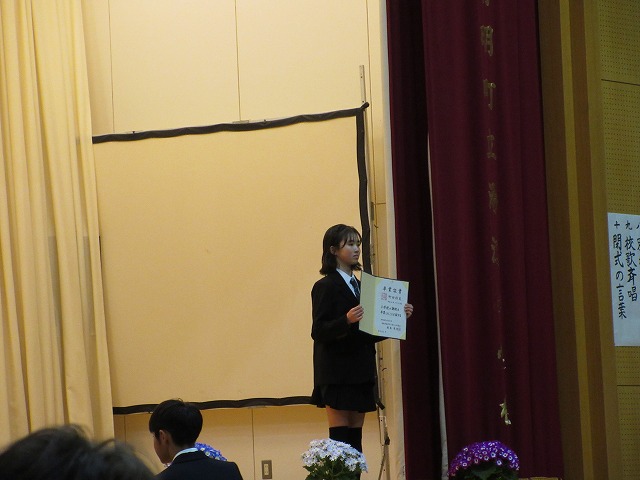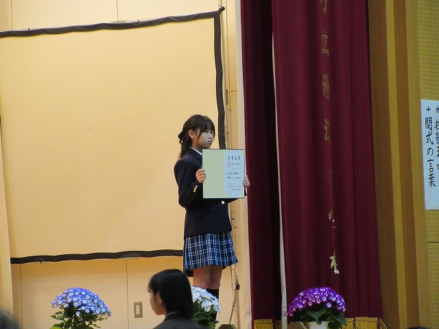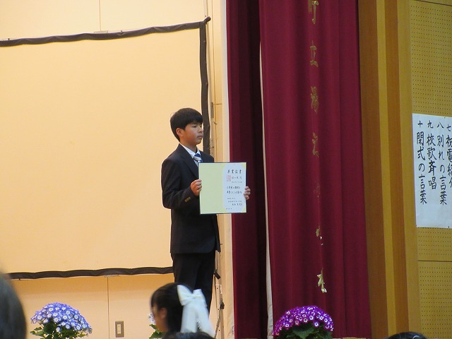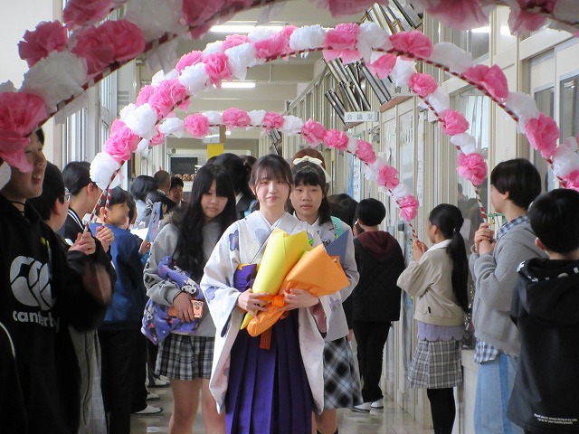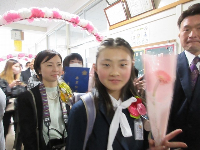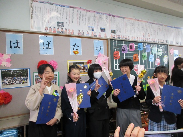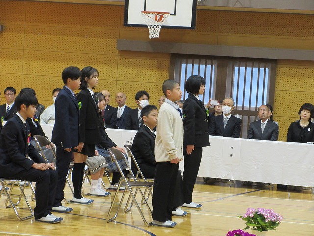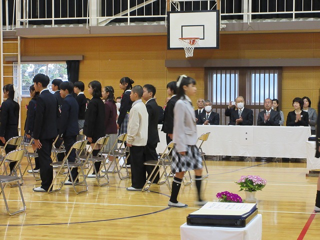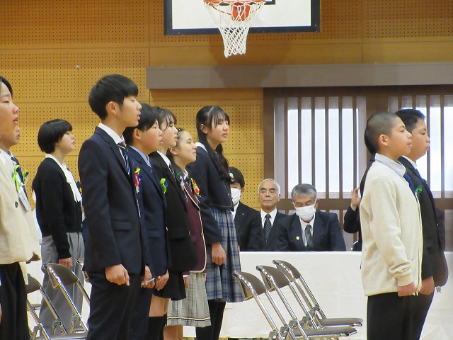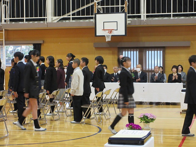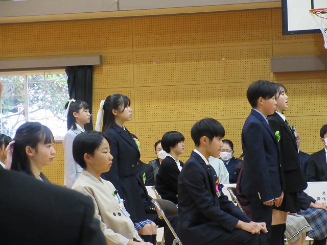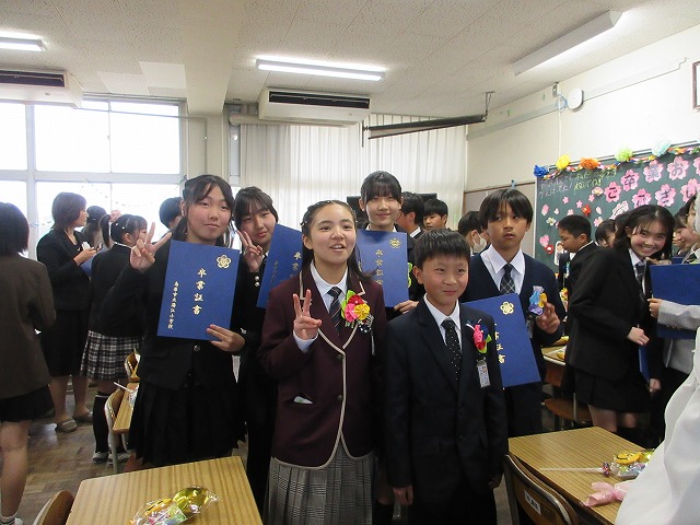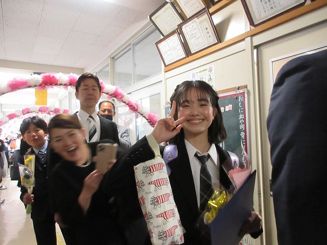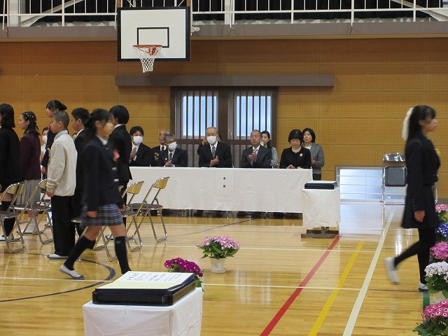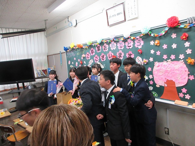 3月18日(水)、第79回卒業証書授与式を行いました。たくさんの保護者、ご来賓の方々を前に、33名は1年間の成長を思わせる立派な態度で証書を受け取りました。別れの言葉や歌では、胸にじ~んとくるものがあり、熱い思いがこみ上げてきました。心に残るすばらしい卒業式でした。希望輝く33名の今後の活躍が楽しみです。