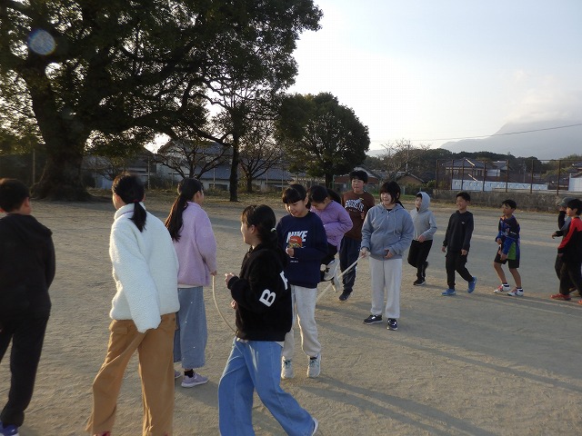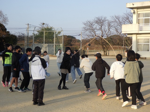来週の長縄集会に向けて、各学級それぞれ練習に取り組んでいます。これは、朝からの練習の様子です。みんなで回数を数え、声をかけ合いながら元気にがんばっています。これまでの最高記録がでると歓声があがり、みんなで喜び合う姿もありました。本番は、来週28日(水)です。それぞれのクラスの最高記録更新をめざします!