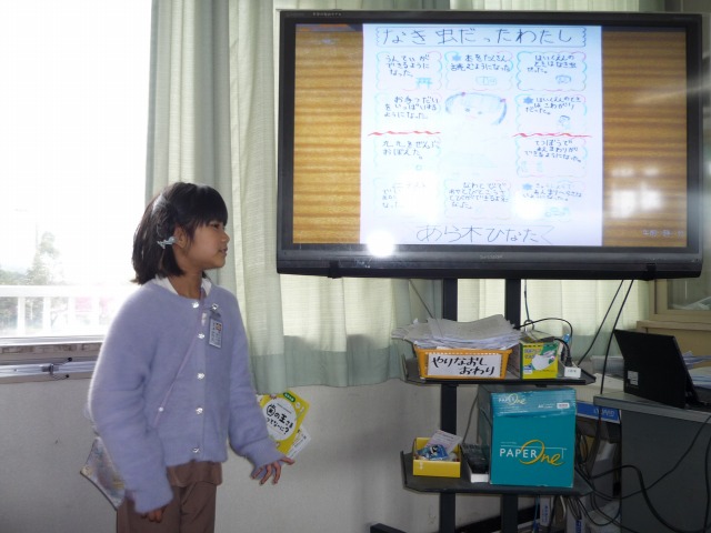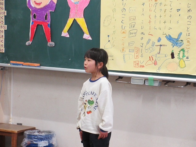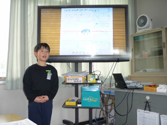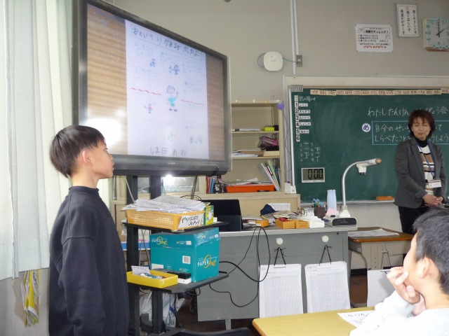 2月25日(水)、1・2年生が、今年度最後の授業参観・学級部会を行いました。1年生は「1年間でできるようになったこと」の発表、2年生は「自分の成長について調べたこと」の発表をしました。計算や自分の特技、歌や合奏など、子どもたちの成長を感じる発表会になりました。