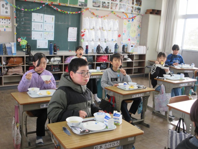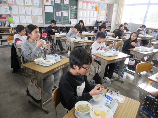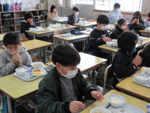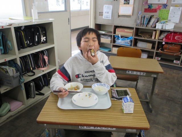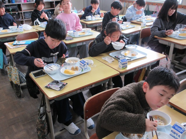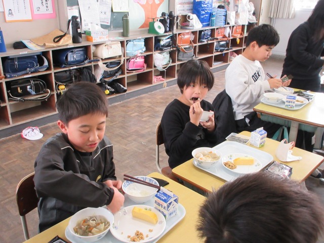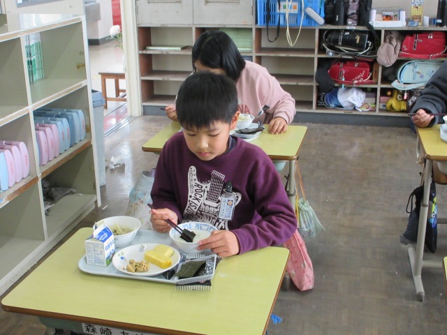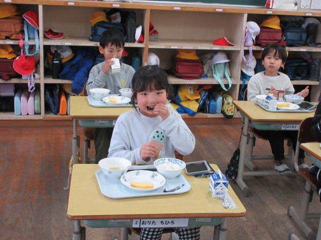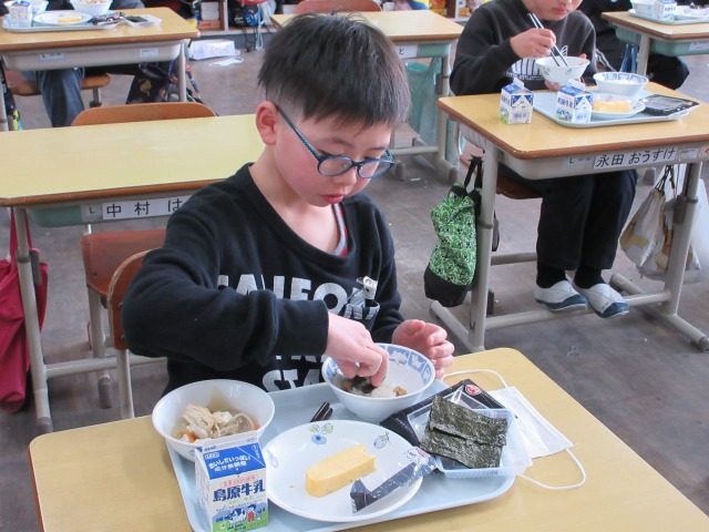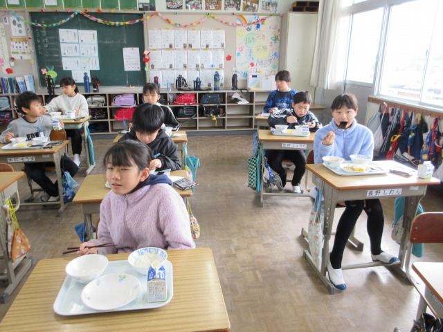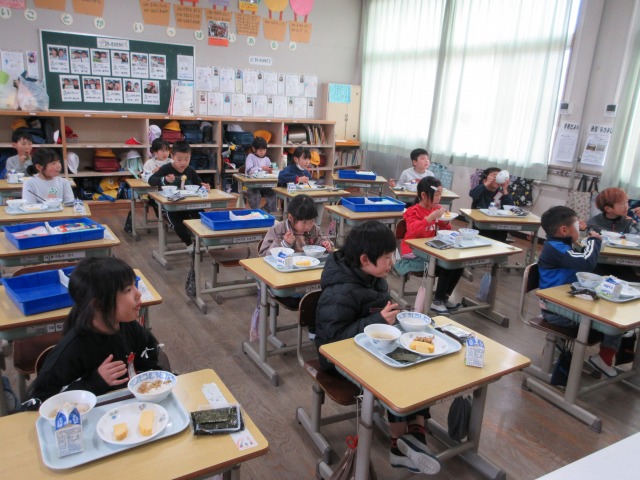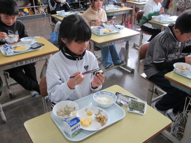 2月6日(金)は、「海苔の日」にちなんで、(株)丸政水産様から提供された海苔を給食でいただきました。海苔は、日本一の生産量を誇る有明海で育ったものです。たんぱく質やビタミン、ミネラルなど栄養が豊富で、体の調子を整える働きがあります。子どもたちは「香りがいい」「ごはんと合うね」と笑顔で味わい、地域の海の恵みに感謝しながら楽しい給食の時間を過ごしました。