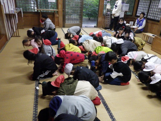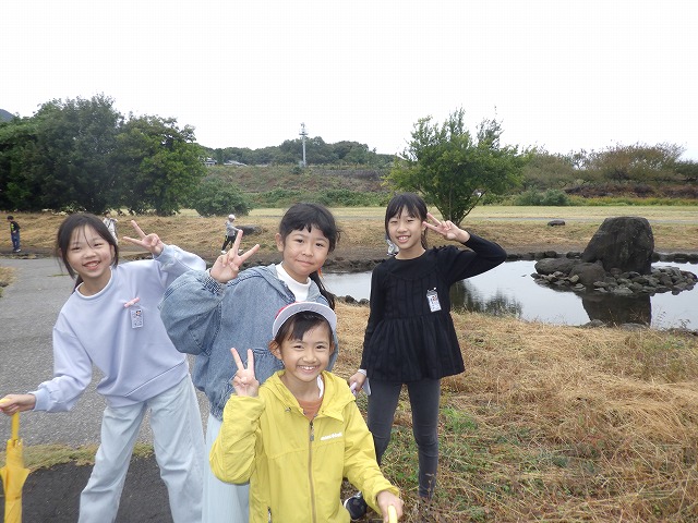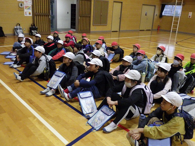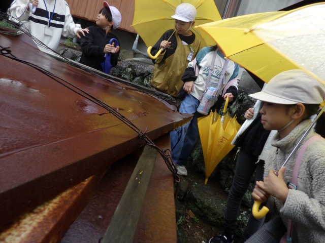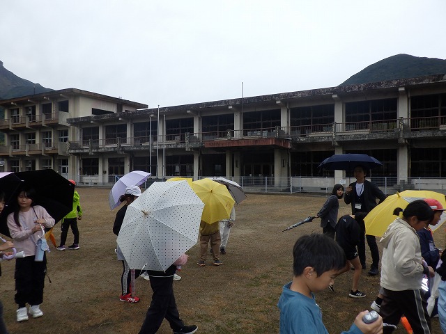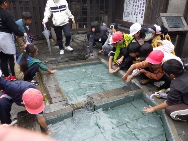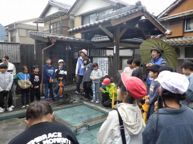 10月31日(金)3年生がジオパーク学習で校外学習に出かけました。朝からあいにくの雨模様でしたが、子どもたちは傘をさして元気に出かけました。まずは、学校周辺の東向寺、温泉神社、庄司井戸を徒歩で散策しました。その後、バスに乗り込んで、平成新山ネイチャーセンターへ。ネイチャーセンターの見学をしたあと昼食をとり、午後は旧大野木場小学校被災校舎、われん川、浜の川湧水に出かけました。ジオパークに関わるいろいろな場所を巡り、自然災害の恐ろしさを知るとともに、自然の美しさや郷土のよさについて学ぶことができました。