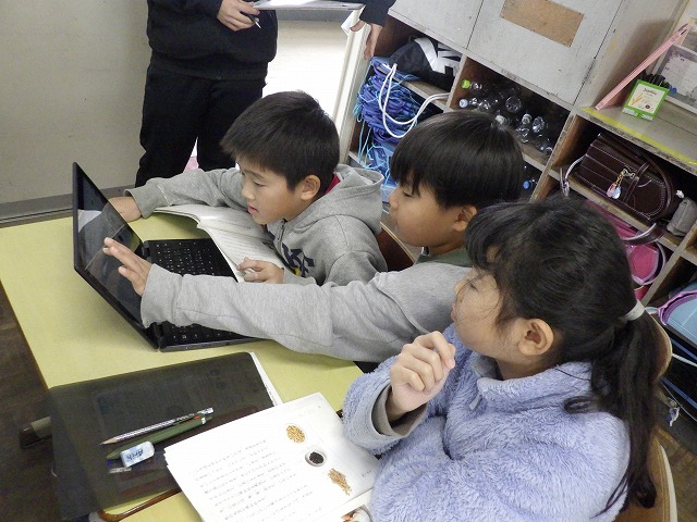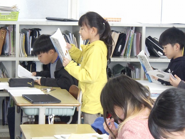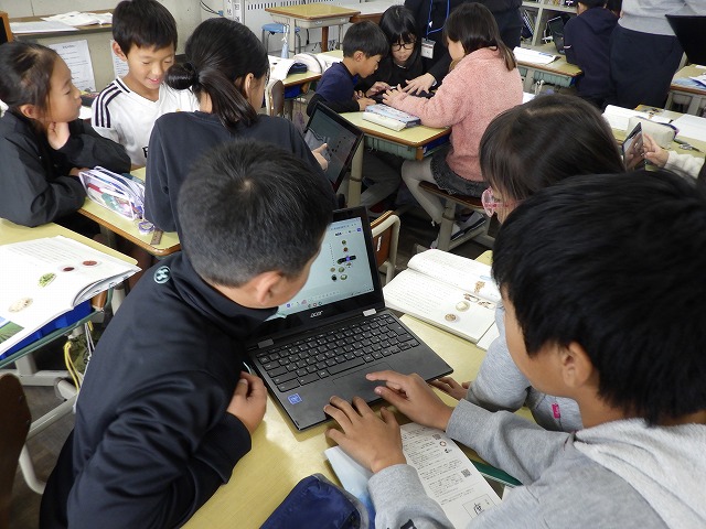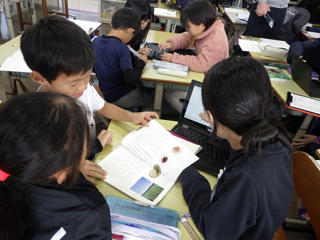 11月20日(木)、3年1組 川口学級で国語科の研究授業を行いました。子どもたちは、教材文を読み、筆者が挙げている事例の順序についてどんな工夫があるかを考えました。タブレット端末を用い、3人組になって写真と工夫を組み合わせたものを並び替え、筆者がどうしてこの順序で書いたのかを話し合いながら考えをまとめました。一生懸命課題に向き合い、主体的に学習に取り組む子どもたちの姿を見ることができました!