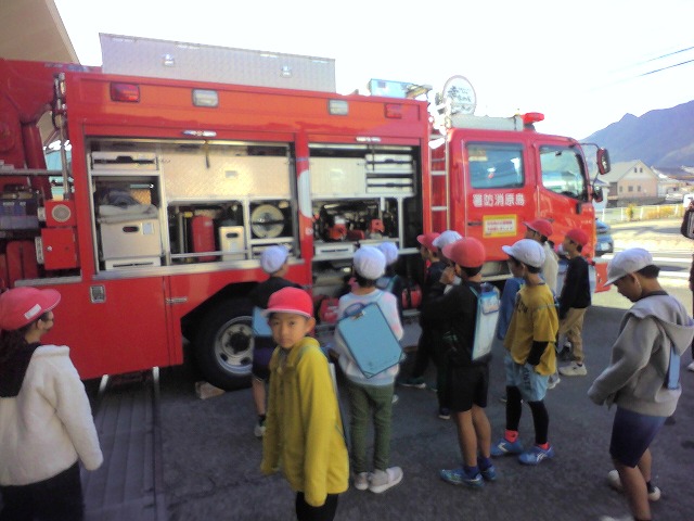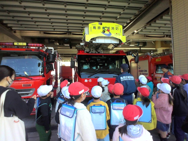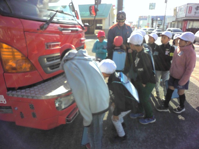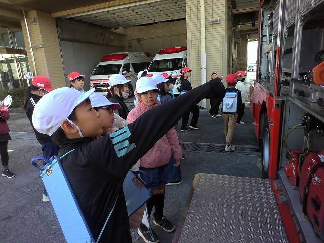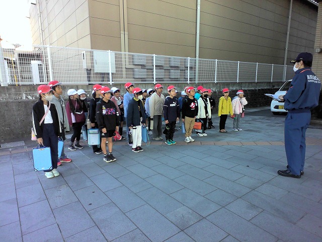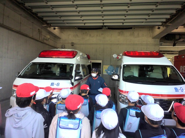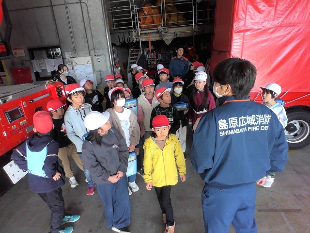 11月28日(金)、3年生が島原消防署・島原警察署の見学に出かけました。まず、消防署では、火事や災害からまちを守るためにどのようなことをしているのかを学びました。通信指令室の様子や各消防車・レスキュー車、救急車の設備なども実際に見せてもらいました。