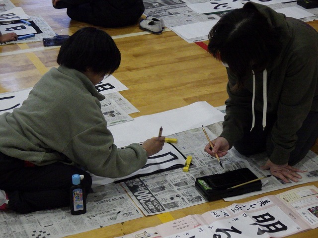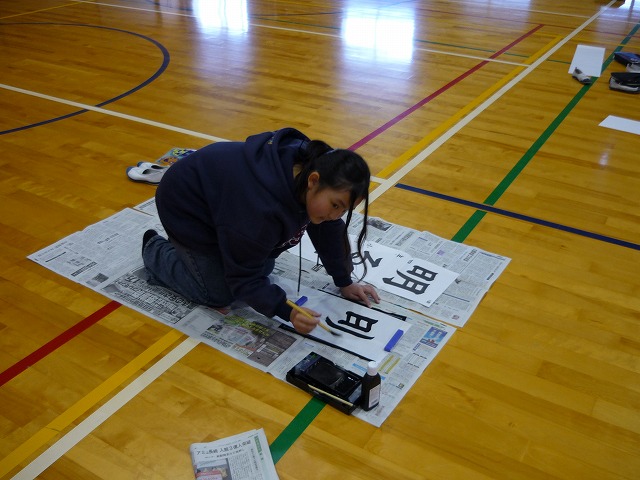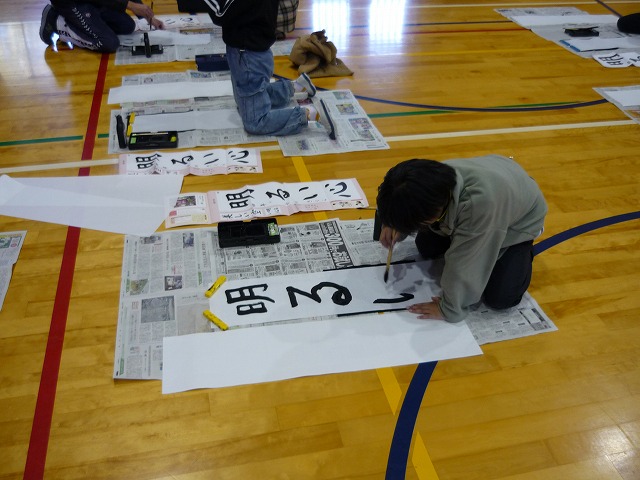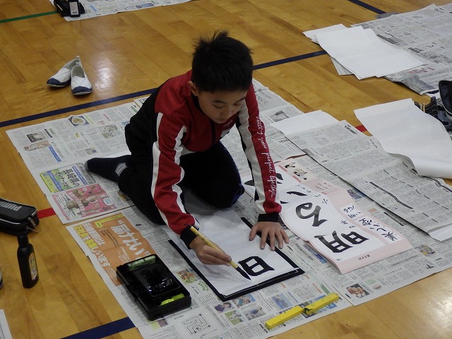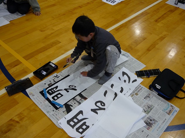 【MANABI】4年生書き初め会! 2026 1/14 湯江っ子のMANABI 2026年1月14日 目次明るい心 1月13日(火)、体育館で4年生が書き初め会を行いました。お題は「明るい心」新年を迎え、明るくやる気に満ちている子どもたちにぴったりの課題です。湯江ん子会の堀さんにもご指導いただきながら、集中して一筆一筆に心を込めて書いていました。 湯江っ子のMANABI