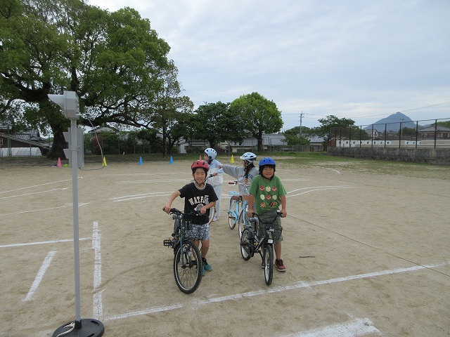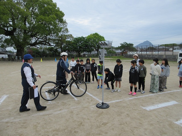 4月22日(水)、4年生を対象に、自転車教室を実施しました。交通安全協会の方を講師にお招きし、自転車の正しい乗り方や交通ルールについて学びました。