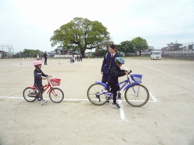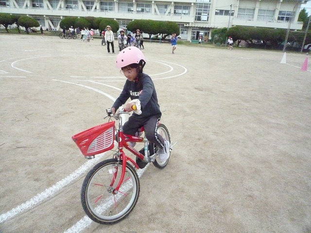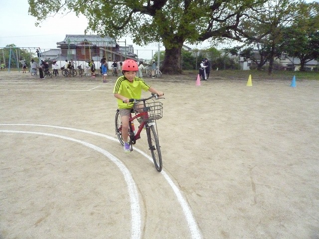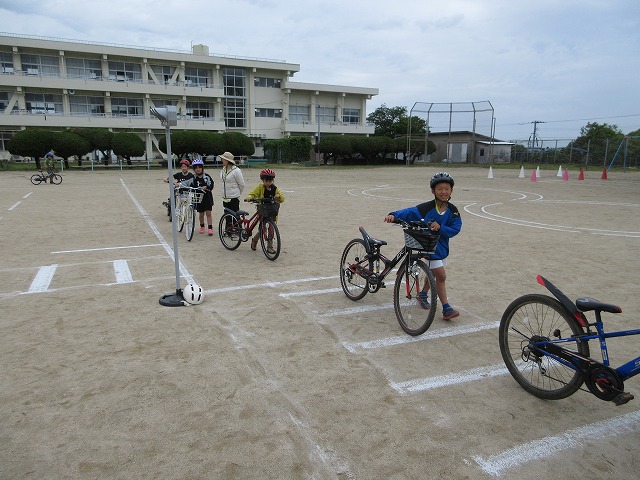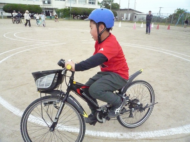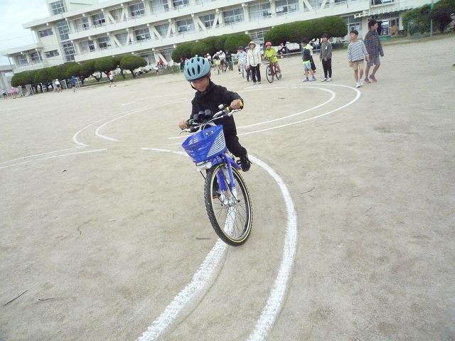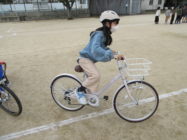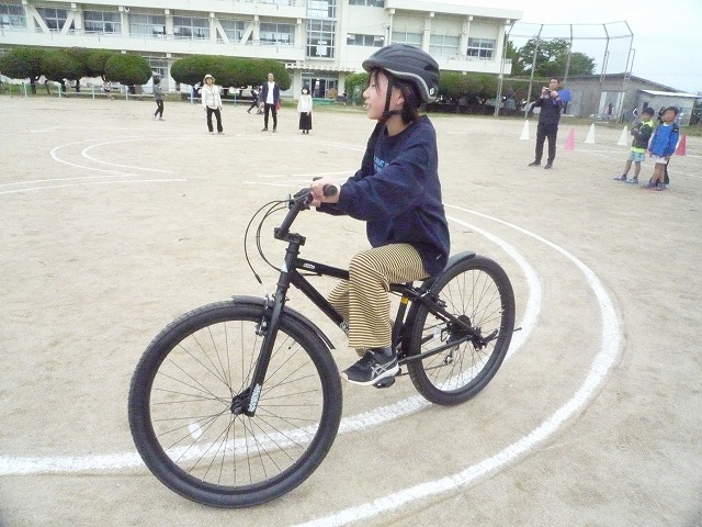 実技では、発進・停止の仕方や安全確認のポイント、交差点での通行方法などを一つ一つ確認しながら練習しました。子どもたちは、講師の方の話を真剣に聞き、安全に乗ることの大切さを実感している様子でした。今回の学習を通して、自分の命を守る行動について考える貴重な機会となりました。