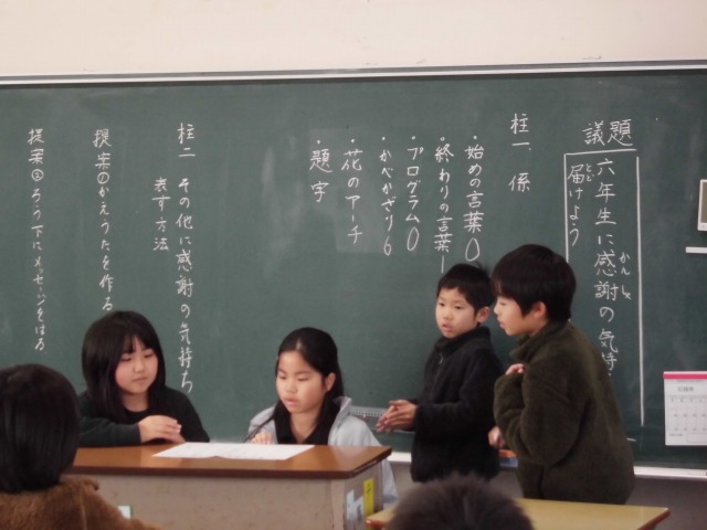 1月19日(月)、来月行われる第5回代表委員会に向けて、4年2組が話合いを行いました。議題は「6年生に感謝の気持ちを届けよう」。送る会で担当する役割や感謝の気持ちをどのような形で表すかについて話し合いました。