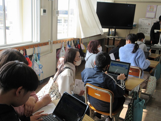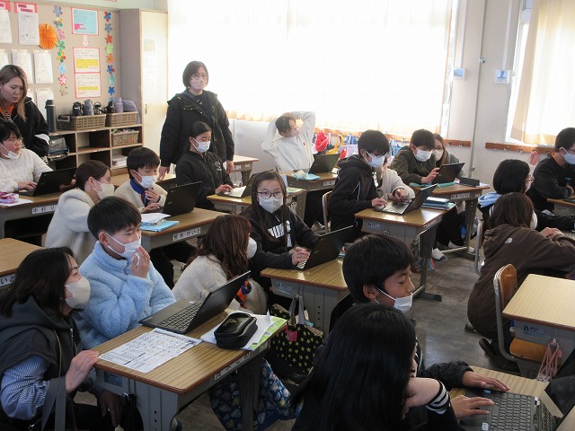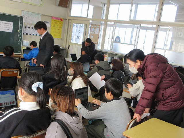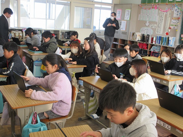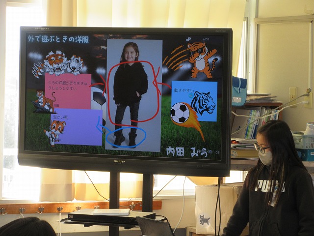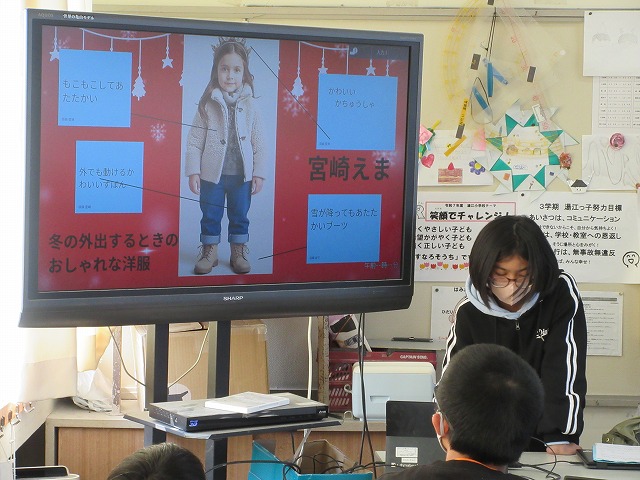 2月12日(木)は、5年生の授業参観・学級部会でした。授業参観では、家庭科の学習で、冬に合わせた暖かい着方の学習をしました。着方のポイントを活かして、それぞれがAIを使って衣服をデザインしました。子どもたちは、思い思いに自分の考える「暖かいファッション」をデザインし紹介していました。その後、保護者の方にも学習で使っている「Canva AI」を子どもたちと一緒に体験してもらいました。