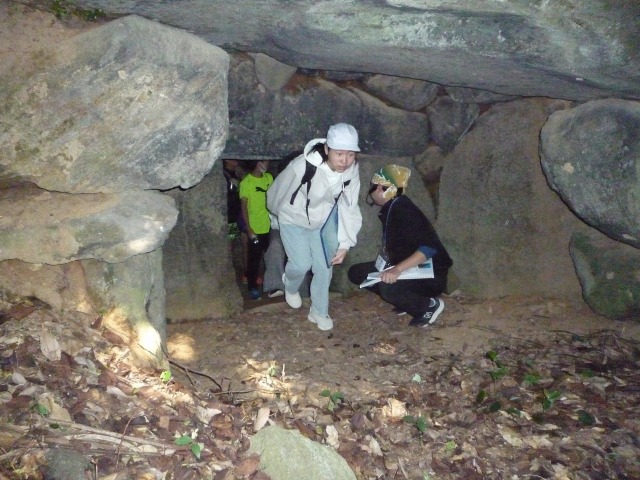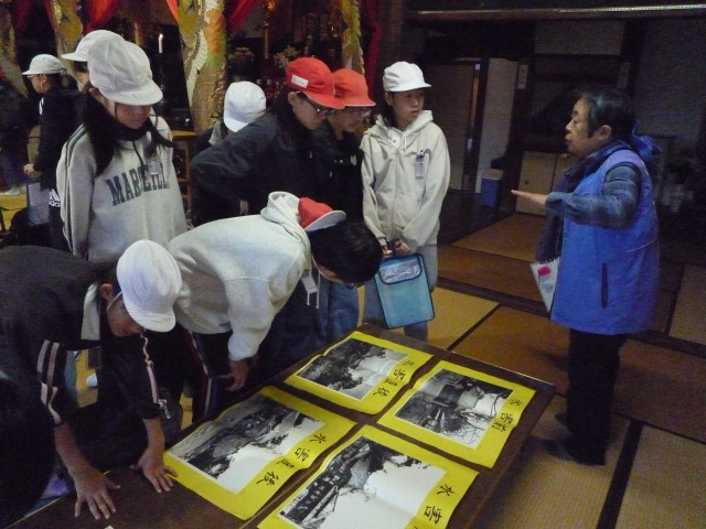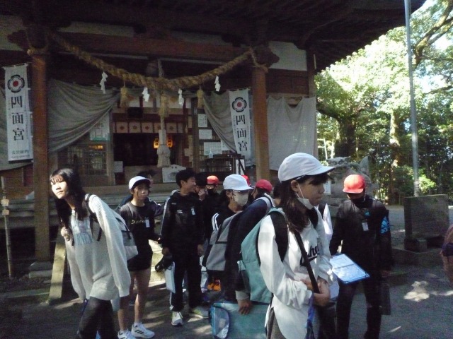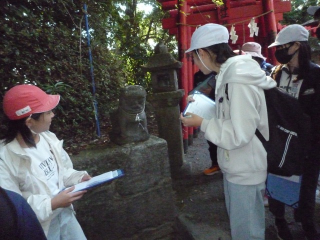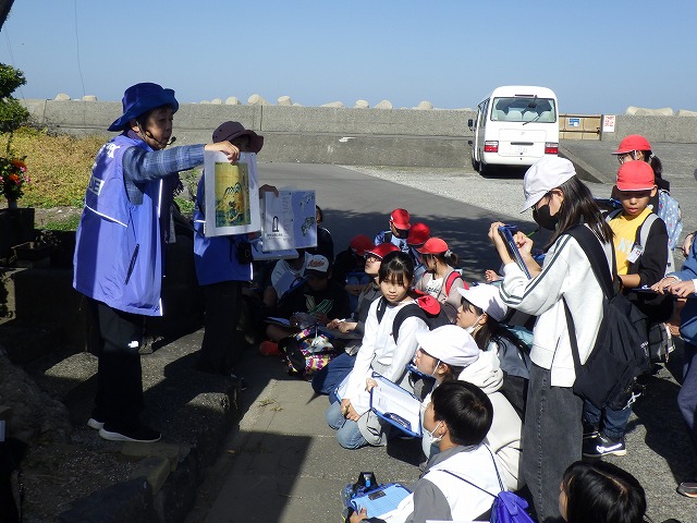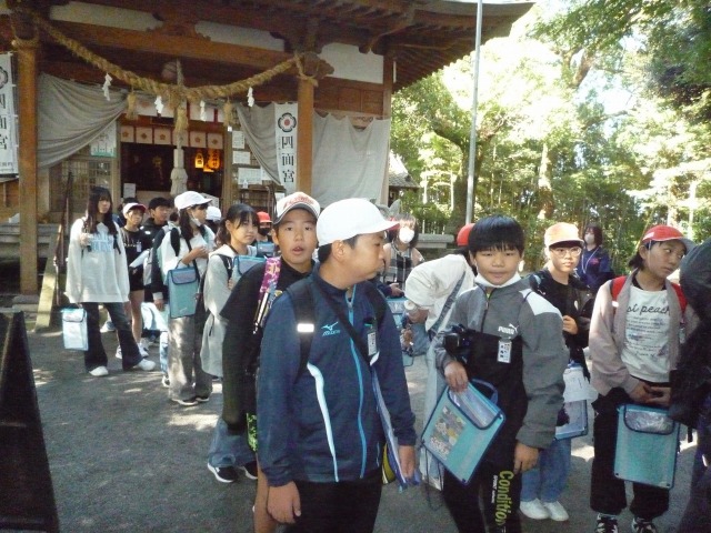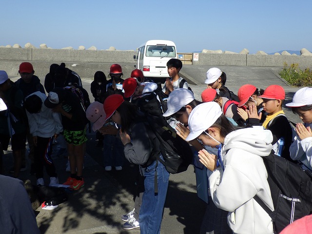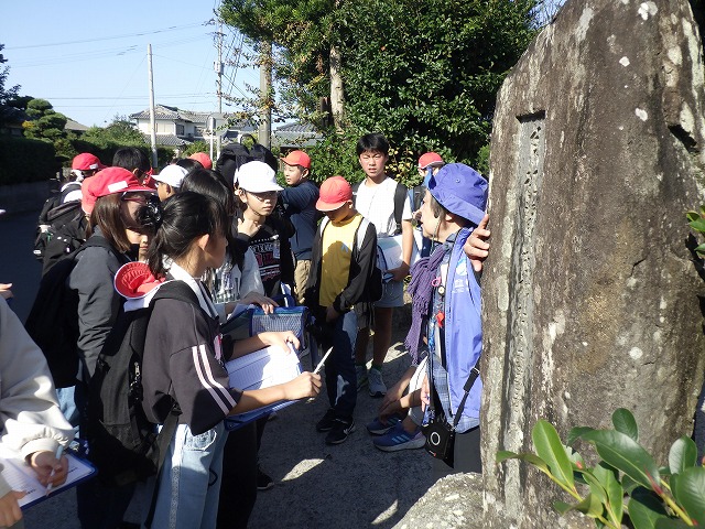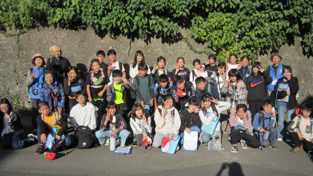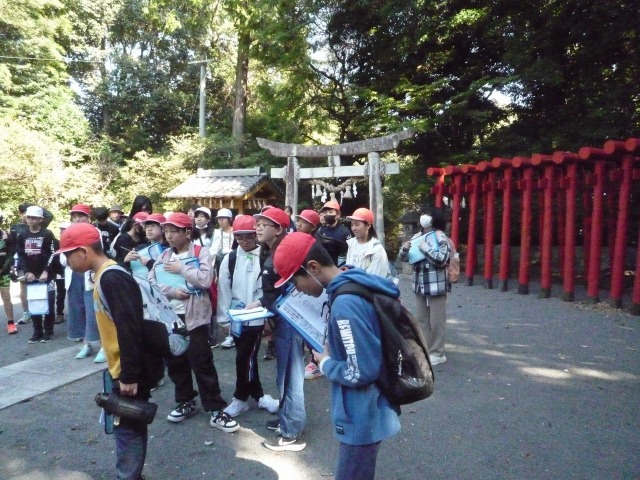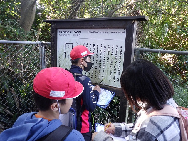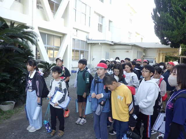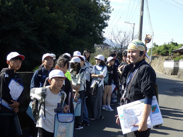 11月7日(金)6年生が湯江・大三東地区を歩いてジオパーク学習を行いました。今回の学習は、校区を中心とした近隣のジオパークについて調べ、土地のつくりや歴史等を学ぶことが目的です。そのため、移動はすべて徒歩で行いました。見学場所は、東向寺、湯江温泉神社、平山古墳、土石流の地層、有明温泉神社、盲目落橋、ボラ供養塔、大野浜流死無縁塔、京都加茂神社、火砕流の地層と盛りだくさんです。途中、有明公民館でお弁当を食べました。子どもたちは、身近でありながら初めて知ることも多く、改めてふるさとのよさを感じました。