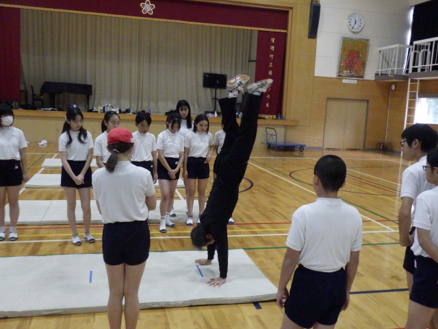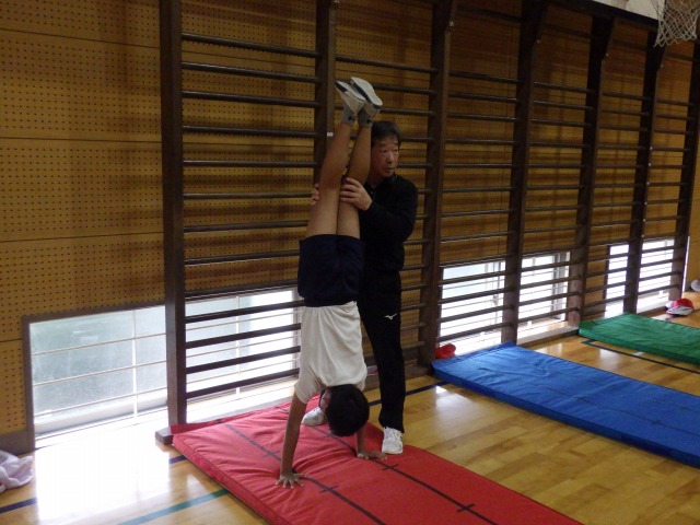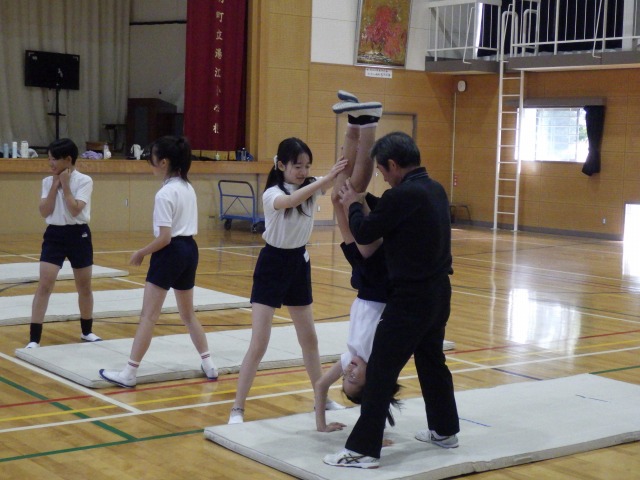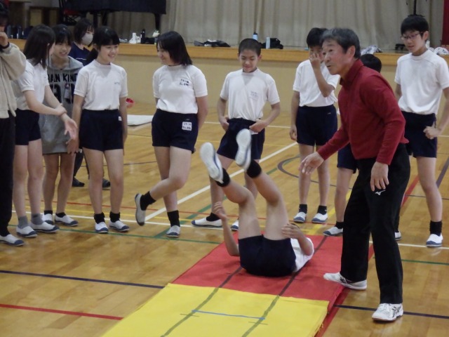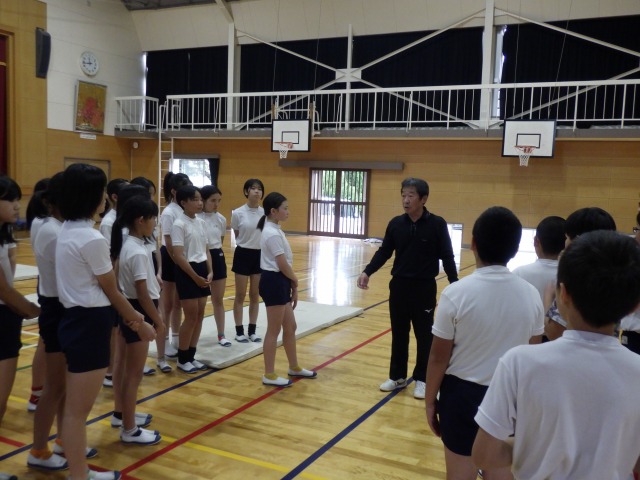 11月5日(水)、6日(木)の2日間、6年生が体育のマット運動の学習で「体育サポーター事業」を活用しました。この事業は、専門の指導者を派遣してもらい、技のこつや練習の仕方を教えてもらう特別授業です。サポーターの先生は、昨年度に引き続き、元高校の先生で体操部の監督をされていた大橋先生です。ご指導の下、子どもたちはいろいろな技に意欲的に取り組み、挑戦していました。